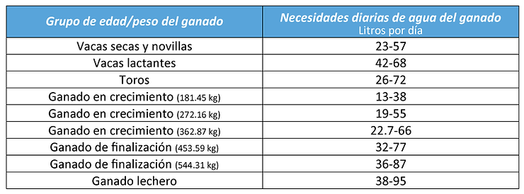 Necesidades diarias de agua del ganado, por grupos de edad