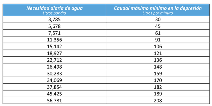Los caudales en el bebedero del ganado determinarán si su fuente de agua es capaz de mantener la demanda máxima durante las sesiones de bebida del ganado. Si el ganado tiene que esperar porque el bebedero del ganado es incapaz de mantener el ritmo de la demanda máxima, esto alterará drásticamente el comportamiento del ganado tanto en los pastos como en los alrededores de la fuente de agua y el aumento de peso de su ganado se verán afectadas. Utilice los caudales de demanda máxima proporcionados en la tabla siguiente para determinar si su sistema de agua actual es capaz de satisfacer la demanda máxima.