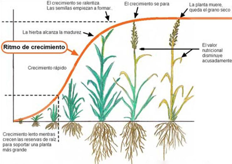 Durante la estación de crecimiento, tu rotación de pastos debería acelerarse o ralentizarse para evitar que la hierba alcance la madurez y espigue.